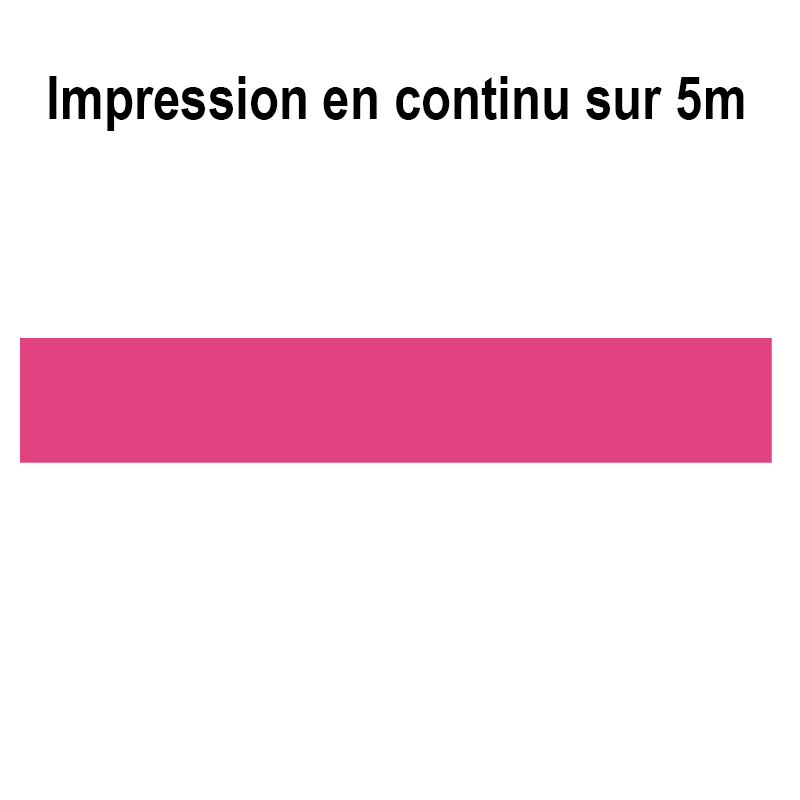 Longueur 5m x 10 cm, texte imprimé en continu.