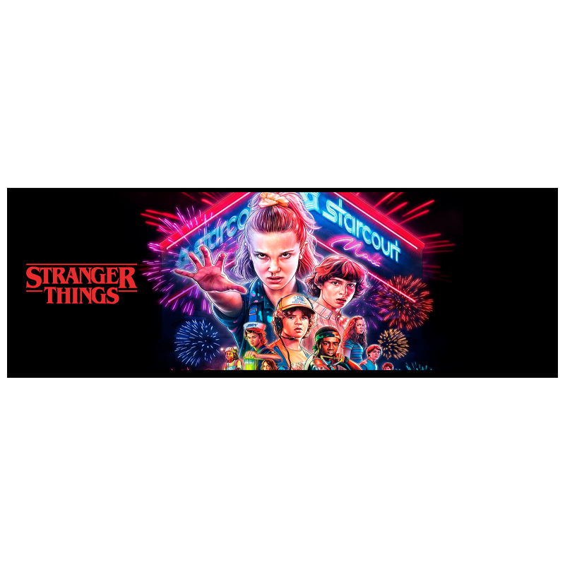 imprimée sur le thème de la série Stranger Things avec les personnages principaux impliqués dans la lutte contre les menaces venues du "Mondes à l'envers .
