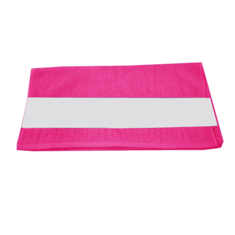 Serviette de toilette rose en éponge de grande qualité et un bandeau blanc en polyester personnalisable