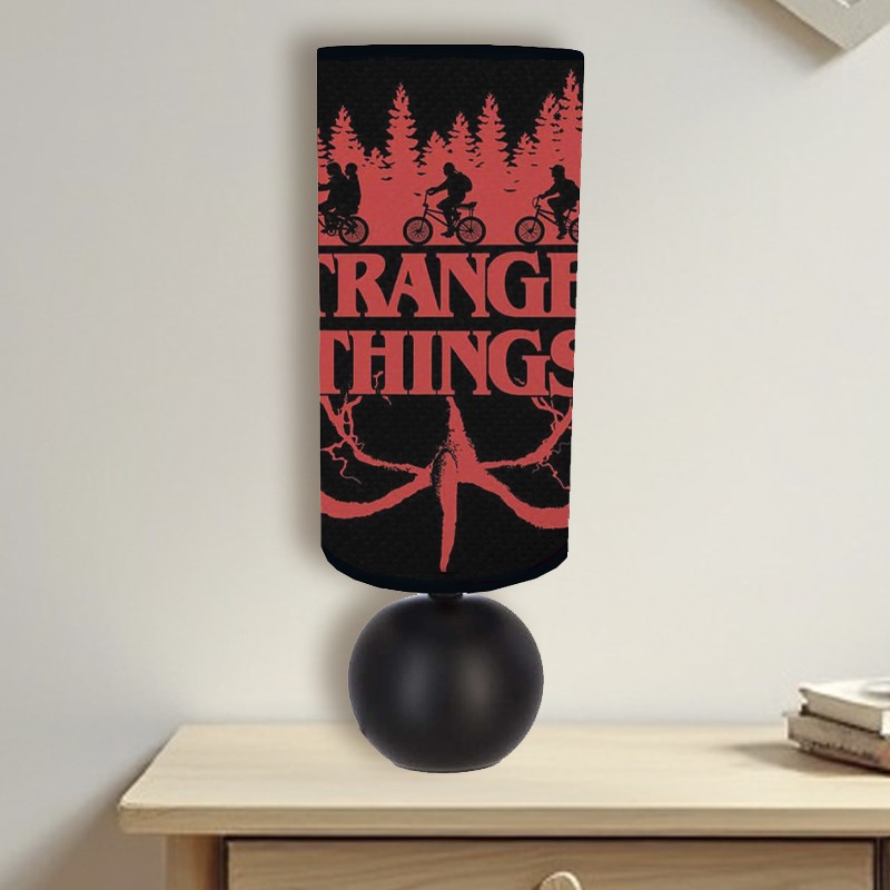 Lampe de chevet imprimée avec le logo emblématique de la série du moment Stranger Things.