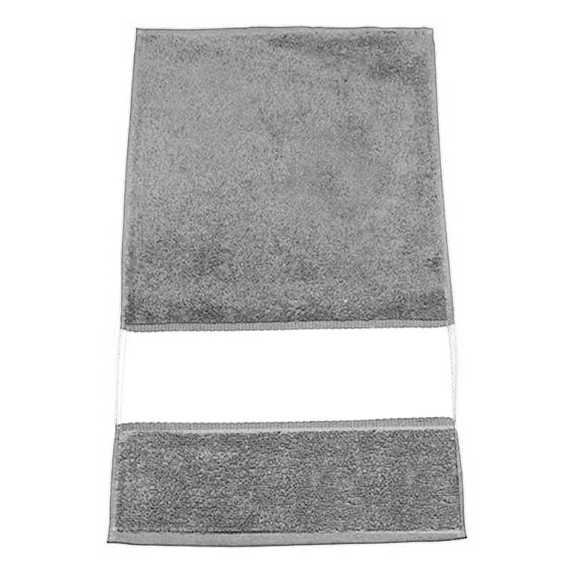 Serviette en éponge 400gr couleur gris clair avec un bandeau blanc personnalisable en ligne